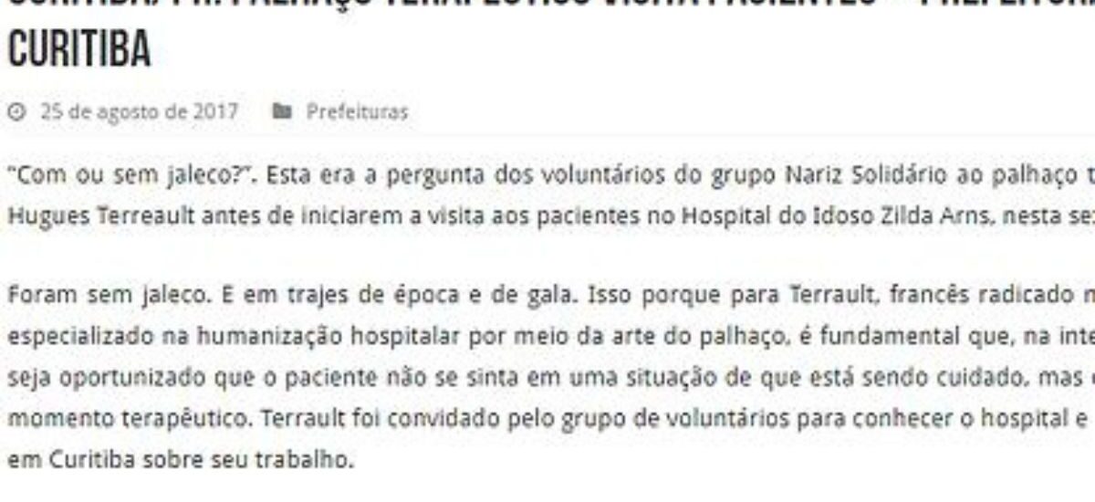 Palhaço terapêutico visita pacientes – Prefeitura de Curitiba.