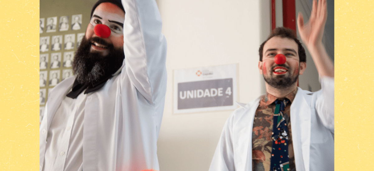 Por equívoco, naquela manhã não assumimos nosso papel fundamental: o lugar de perdedores frente a tamanha fofura. Insistimos. E que baita erro se despir de nossa principal ferramenta, a derrota. Mas, como ser mais palhaço do que quando erramos?Insistimos, seguimos e entre um quarto e outro, um cão e outro, tentávamos exercer nosso jogo e encontrar nossas soluções imediatas. Em um dos quartos, Matheus estava em companhia de seus pais e iniciamos a interação. Um de nossos incríveis números de mágica se iniciava junto daquele seleto público quando fomos interpelados. A porta do almoço da TV Colosso parecia ter sido aberta e a bicharada começou a entrar no quarto! Matheus, por surpresa, desviou sua atenção. Acariciou um dos bichos que lhe foi aproximado e aguardou a retomada daquele imperdível número de mágica. A essas alturas, Nilovsky já havia guardado seu pandeiro embaixo do braço e estava quase a recolher seu estupendo lenço mágico. Fanikita, então, avisou-o para que retomasse e ele voltou a se preparar! Maaaaaaasss, quando ia retomar suas atividades ilusionísticas… eis que entra sujeito de jaleco branco, sem nariz vermelho no quarto! Antes mesmo que ele pudesse se apresentar ou dizer a que veio, Nilovsky afirmou : “Produtor! Até quem enfim você chegou! Pega esse pandeiro e rufa o tambor porque é hora da mágica”. O produtor não titubeou, começou a rufar e enfim a magia aconteceu! A dupla, agradecida, despediu-se e só assim o produtor pode assumir sua real função: a de médico pediatra. Na lógica do palhaço, médico vira produtor! E produtor faz o que? Rufa tambor! Mas, que tambor? O pandeiro, oras!